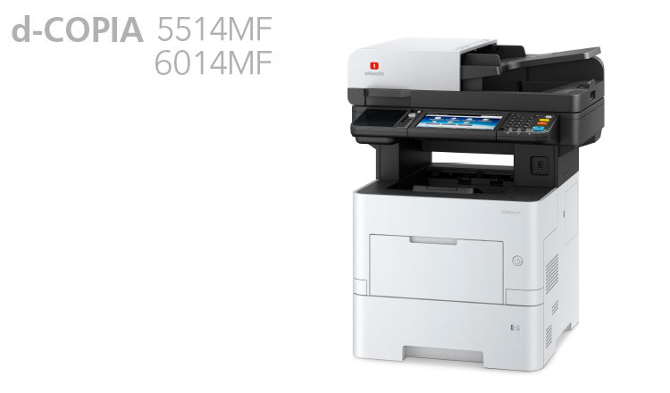 High speed for big demands with space saving compact design is the characteristic of the d-Copia 5514MF and 6014MF. With print speeds of 55 and 60 pages per minute they can manage busy times for multiple users as well as big jobs. The colour touch screen allows for easy operation. The dual scan document feeder holds up to 100 originals and scans 100 images per minute.